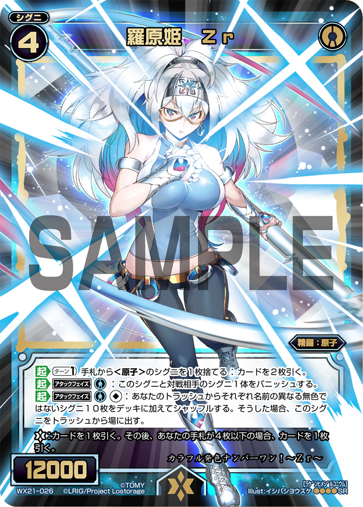 Her Constant allows her to take no damage from LRIGs when her hand is zero. This effect not only rewards the player for playing in line with her SIGNI's specialty (Discarding to trigger effects), it also blocks many other threats like Layla's double doping, Guzuko's Direct and even Catharsis from mirror matchup TELOS.