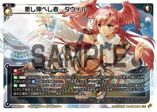 Like Ril, most of her SIGNI support this set are rarely used. Though White Pearl Hope can help trigger Yomifuda effect easier, its 2 ener cost is too steep to be used early game, the most optimal time to trigger Yomifuda's effect. However despite how bad Tama's SIGNI in this set are, she still got good support to stay relevant in the tournament scene - in the form of Eldora key.