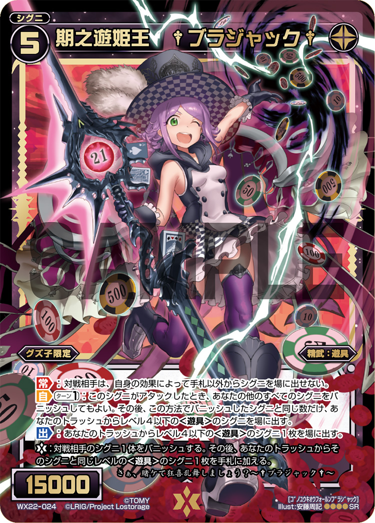 Another 2 sneaky SIGNI, it pretty much has the same situation as the above -mentioned Otagame-Daihouika, either clearing all their SIGNI or stop the attacks without removing any SIGNI. The trigger SIGNI is most often Alfou's signature SIGNI, Sayuragi but can also be done in other LRIGs like Umr using Nyarctho.