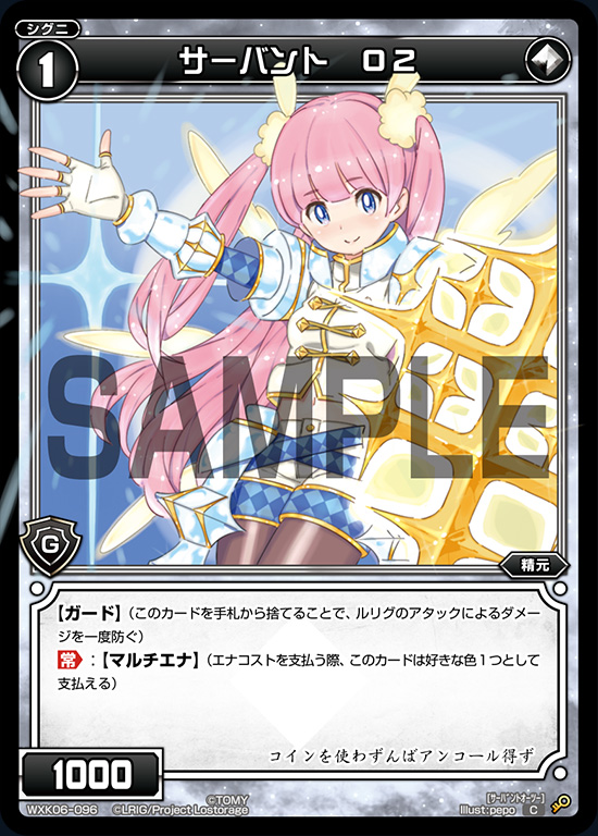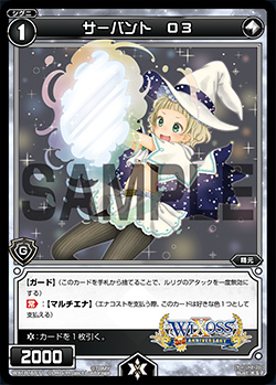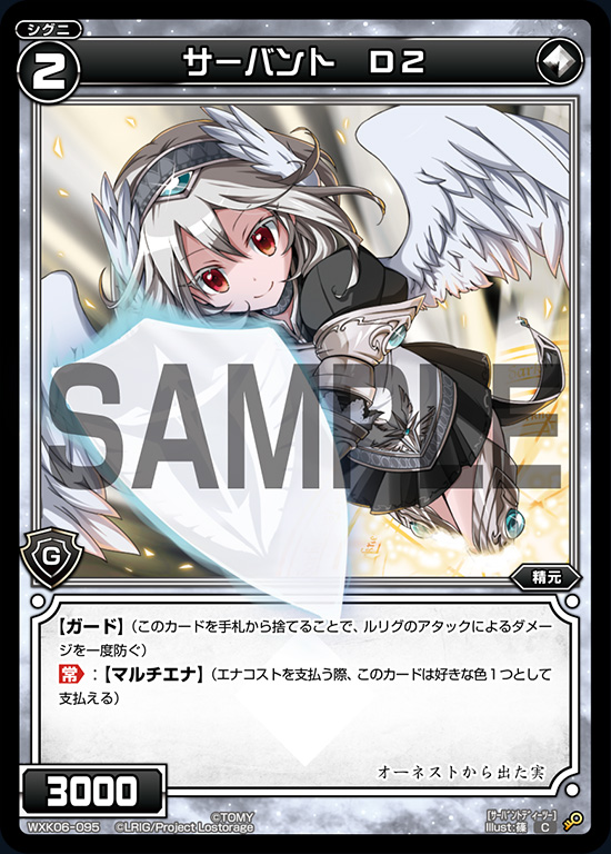 Released from WX02 onwards, O2, D2, T2 and Q2 make up the knight themed 2nd series of guards, no burst guards. These guards are extremely popular in both formats due to the fact that your life burst slot are very limited. It can be easily used to increase the number of guards you have even if you hit the 20 burst deck limit. Very good to keep multiple copies if you plan on building multiple WIXOSS decks.
